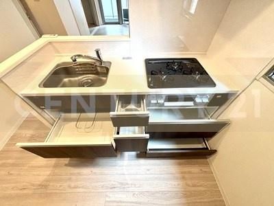築1年☆角部屋☆角部屋☆ネット使用料無料!!WIC、浴室乾燥機など設備が充実したお部屋です。人気の対面式キッチン☆三口コンロ☆商店街に隣接で生活便利☆オートロック・宅配ボックスあり☆