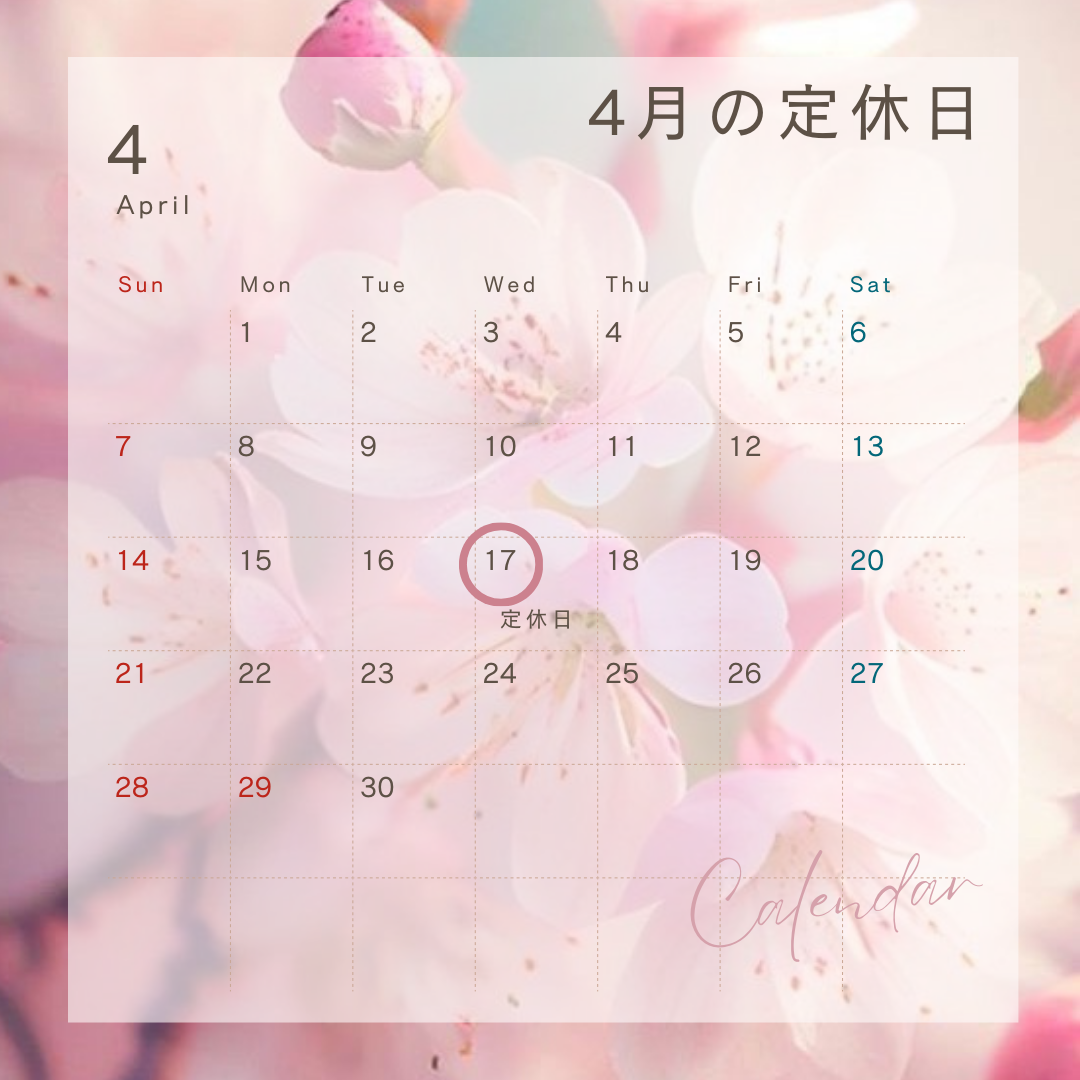 【4月の定休日のお知らせ】