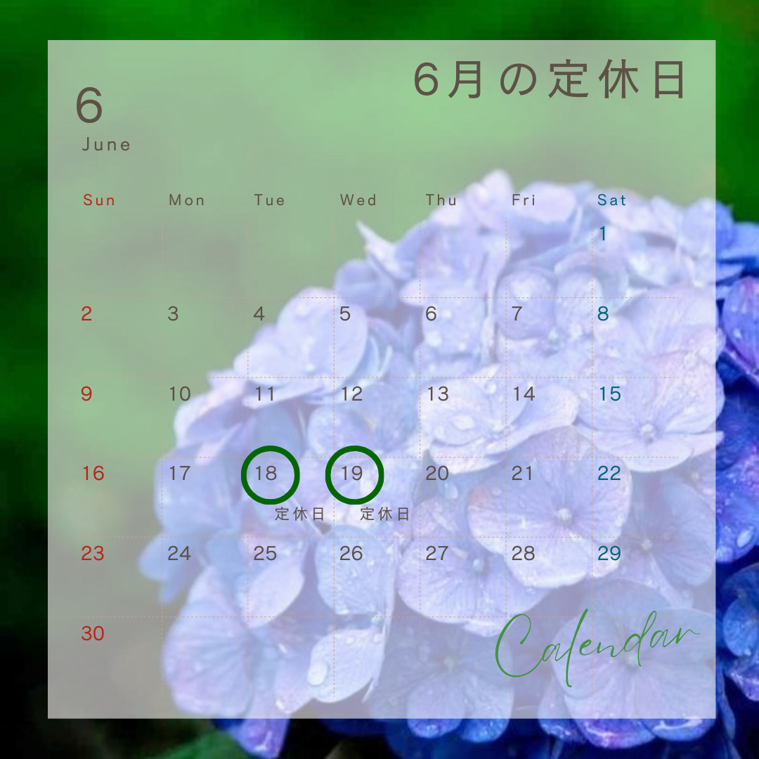 【6月の定休日のお知らせ】