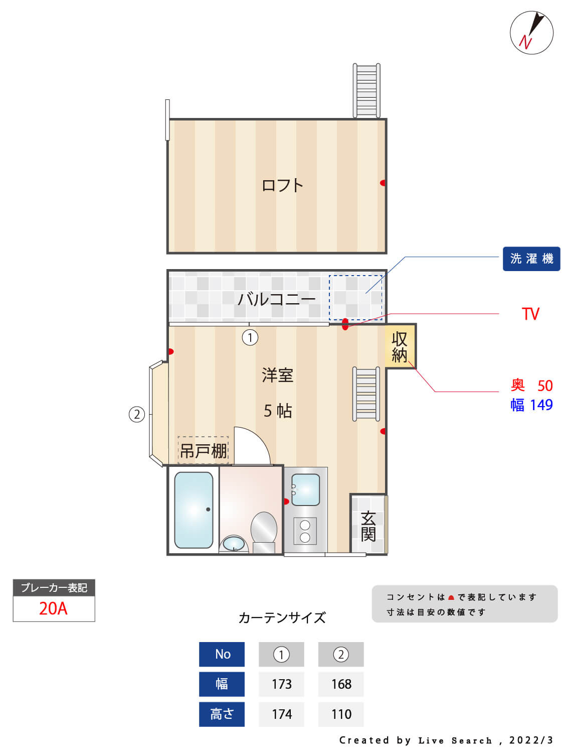 約2帖のロフト付きワンルーム。最上階。角部屋。