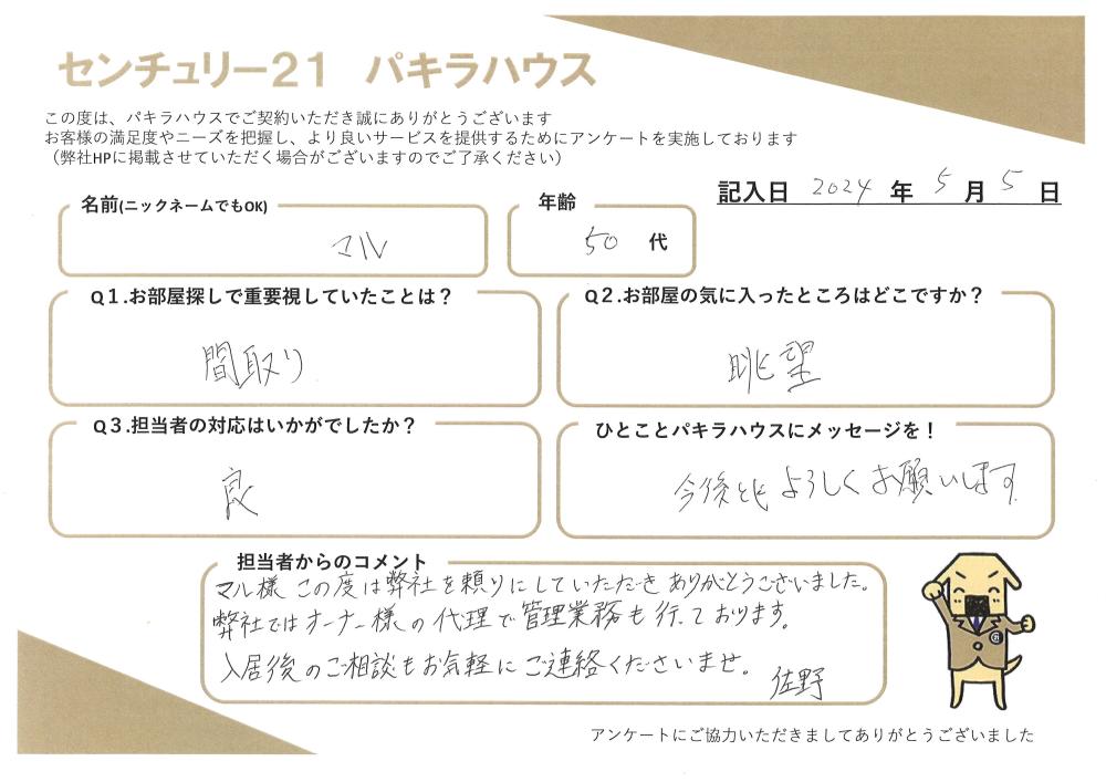 お客様の声【居住用賃貸ご成約】マル様・50代 | 雑司が谷・目白の賃貸・不動産ならセンチュリー21パキラハウス