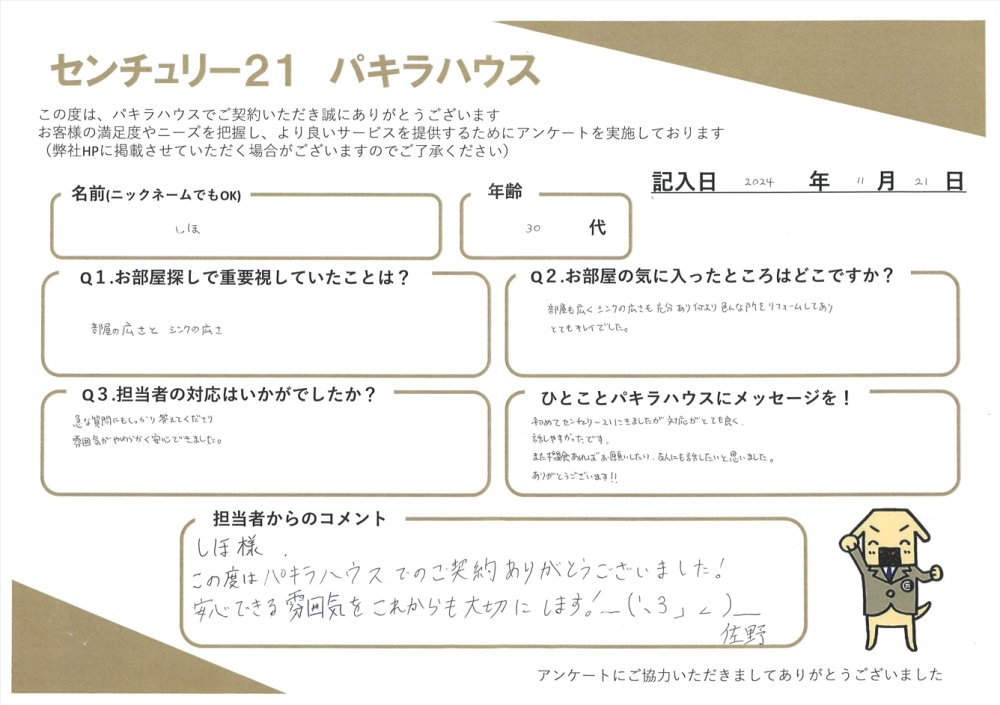 初めてセンチュリー21にきましたが、対応がとても良く話しやすかったです。