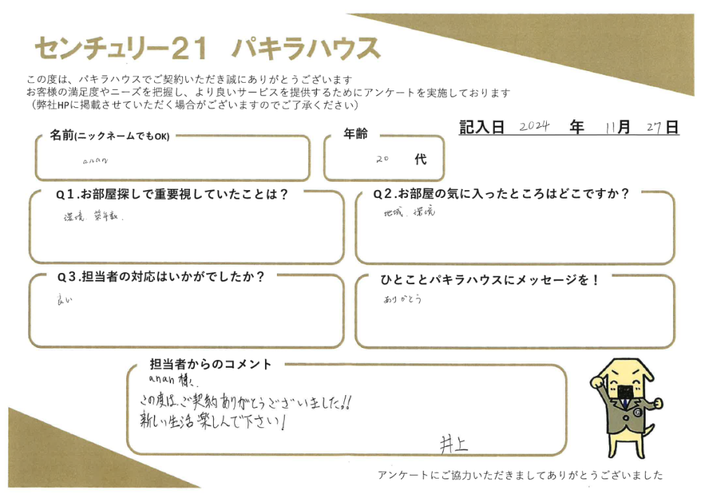 お客様の声【居住用賃貸ご成約】anan様・20代 | 雑司が谷・目白の賃貸・不動産ならセンチュリー21パキラハウス