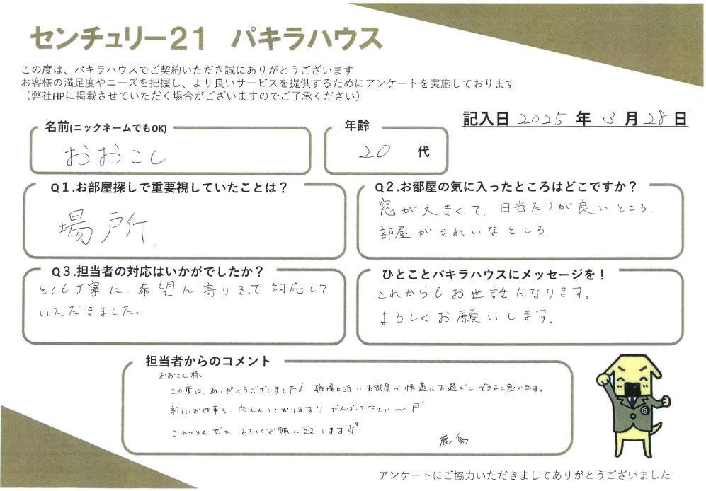 【居住用賃貸ご成約】おおこし様・20代